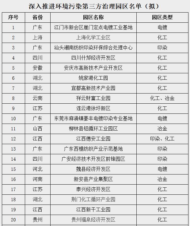 關(guān)于深入推進(jìn)環(huán)境污染第三方治理園區(qū)名單的公示