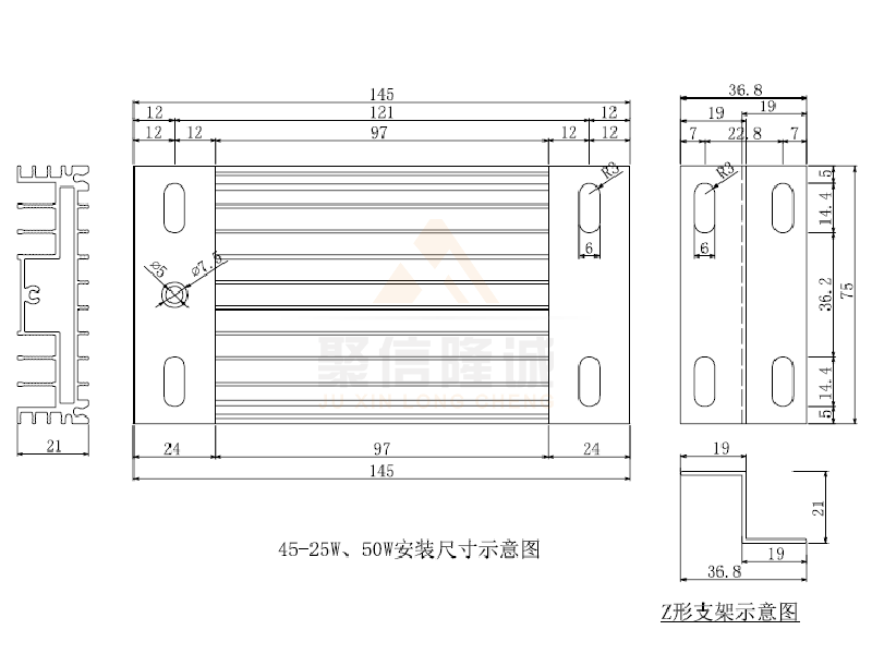 | DJR-145□ 25W | AC220V | 25W±10% | 1930Ω±10% | 鋁合金6063-T5 | 鎳鉻合金絲 |