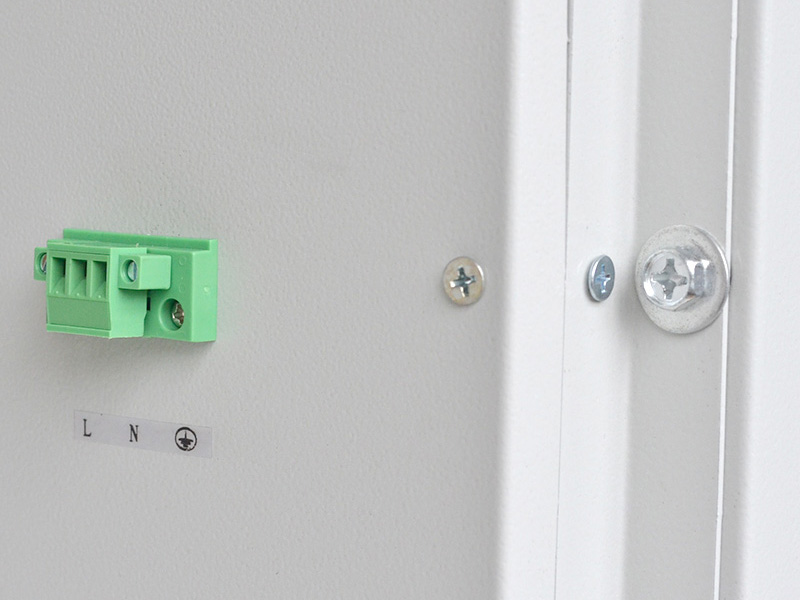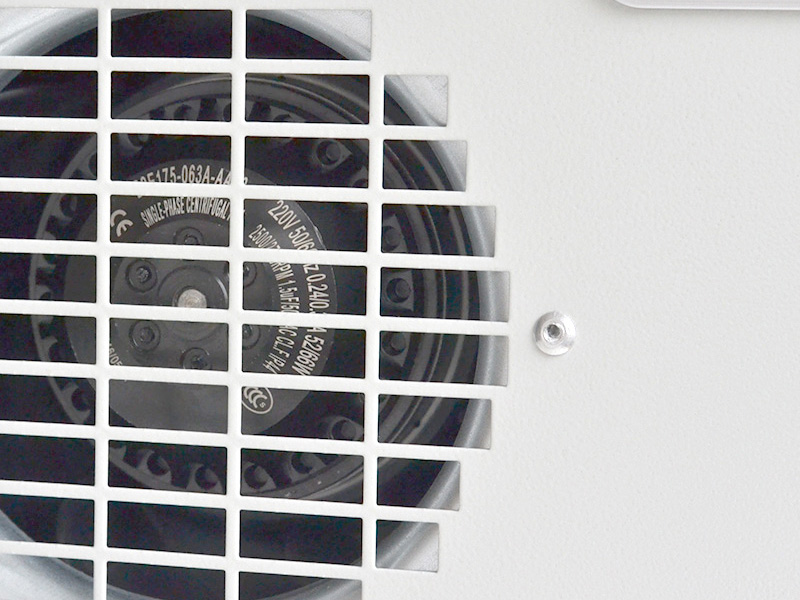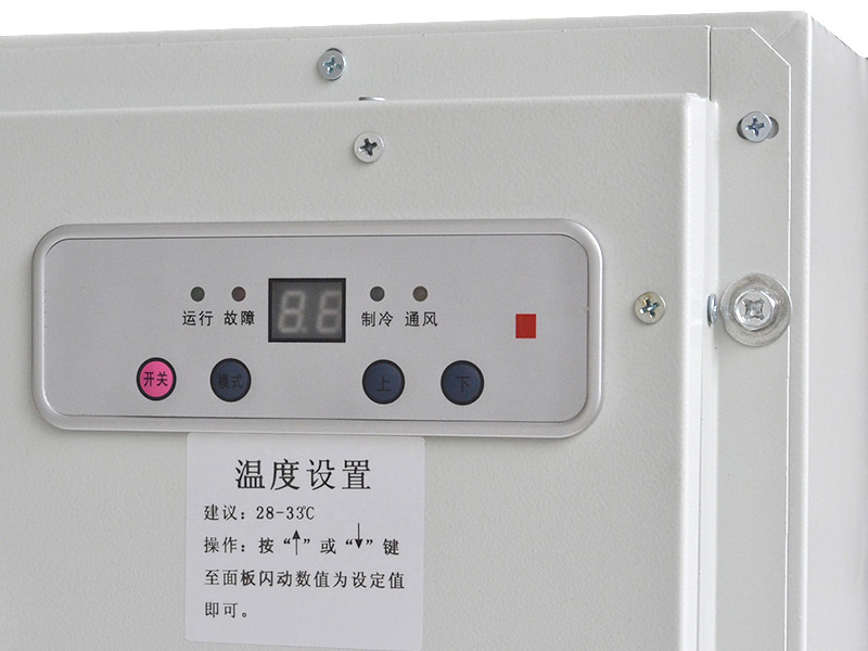 空調(diào)器內(nèi)循環(huán)的風扇從上部吸入熱空氣,使空氣不斷通過蒸發(fā)器的翅片進行熱交換,并將放熱后變冷的空氣從下部排出空調(diào)器,并送向柜內(nèi)。如此柜內(nèi)空氣不斷循環(huán)流動,達到降低溫度的目的。同時,外部循環(huán)的風扇從下部吸入外界冷空氣,經(jīng)過熱交換后熱空氣從上部排出空調(diào)器。